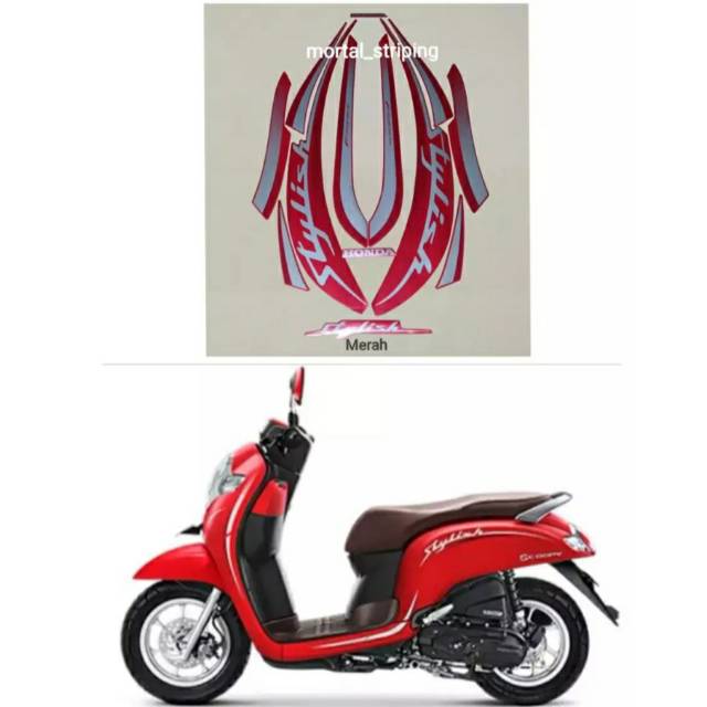 Stiker Striping Les Lis Bodi Honda Scoopy Fi New 2019 2020 Warna Merah Dof Standar